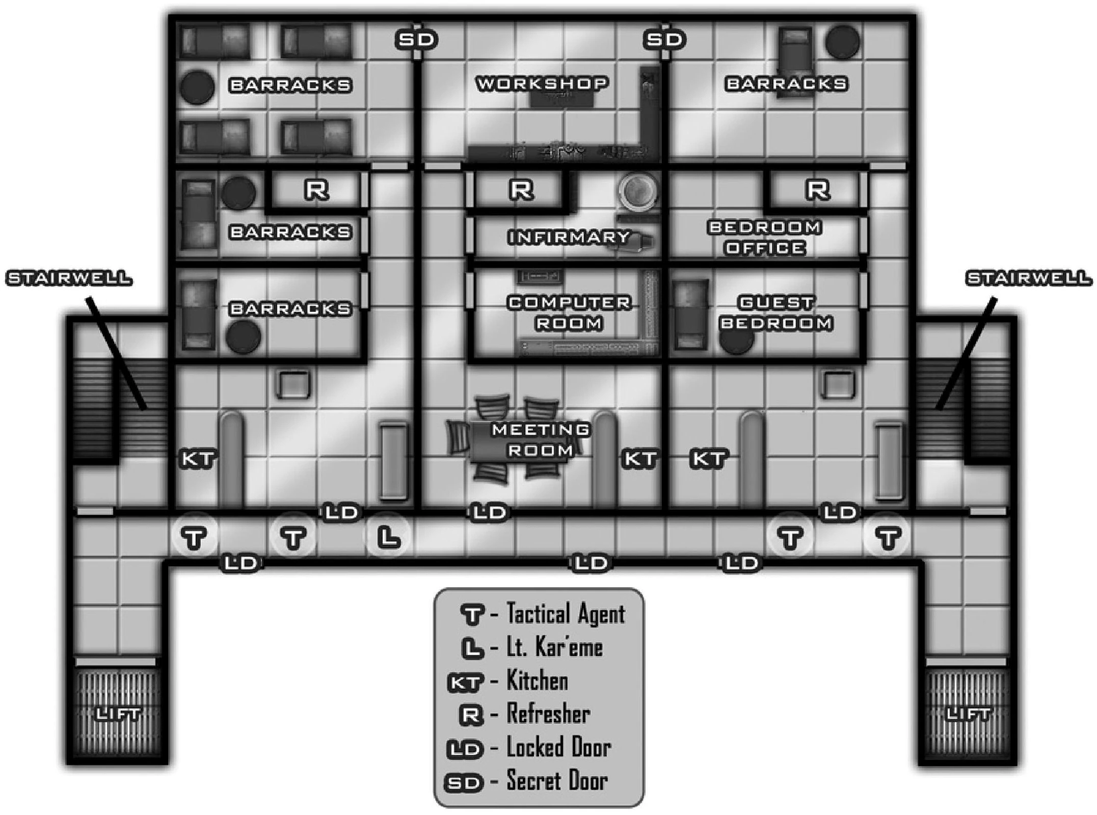 In the event that the heroes venture upstairs to search for enemies, the tactical team sets an ambush, waiting for them to clear the turbolift or stairs before opening fire.