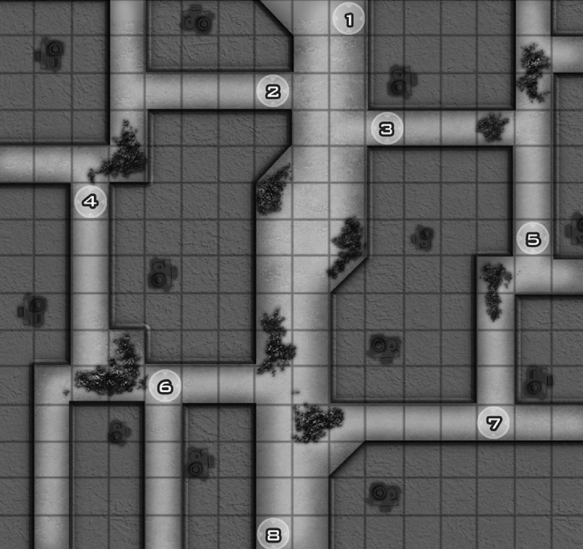 The street is cluttered with all manner of trash and debris. Moving through areas marked with debris on the map counts as moving through Difficult Terrain.